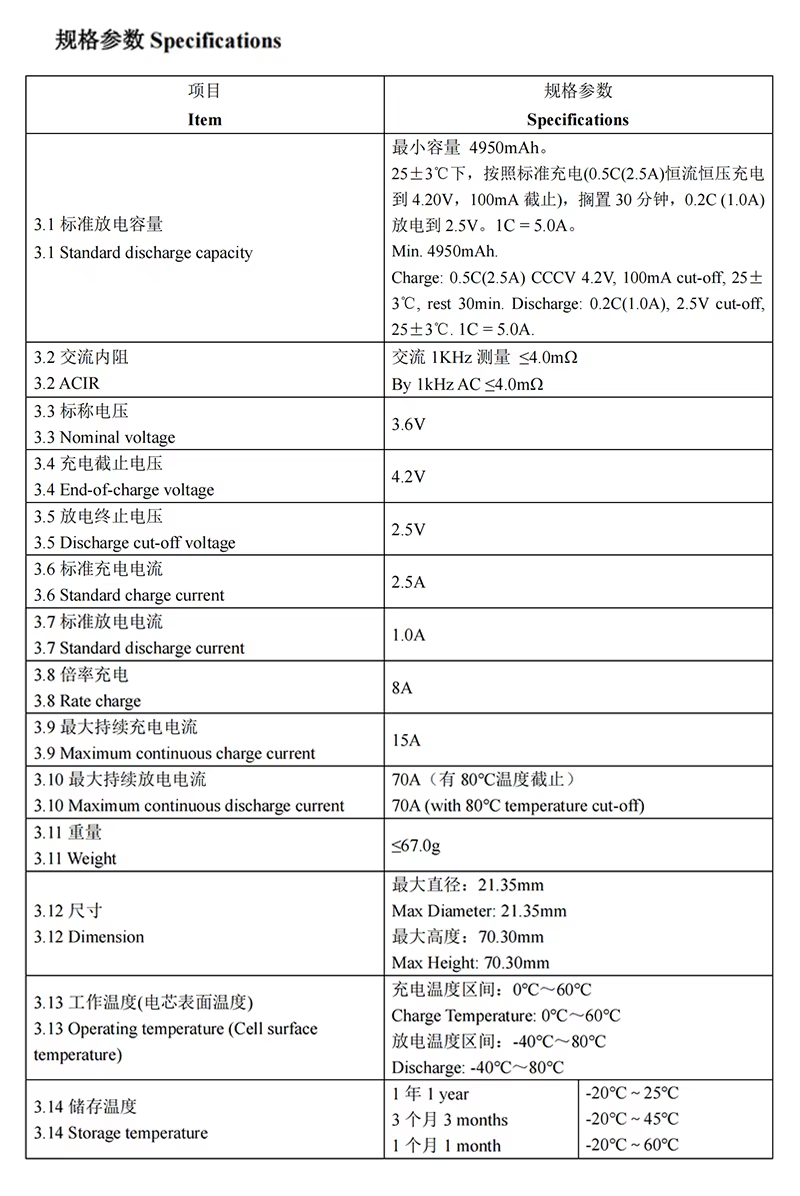 High Power Reliance RS50 21700 5000mah 70A 3.6V Rechargeable Battery Low Temperature Battery for Electric Tool Drone Scooter