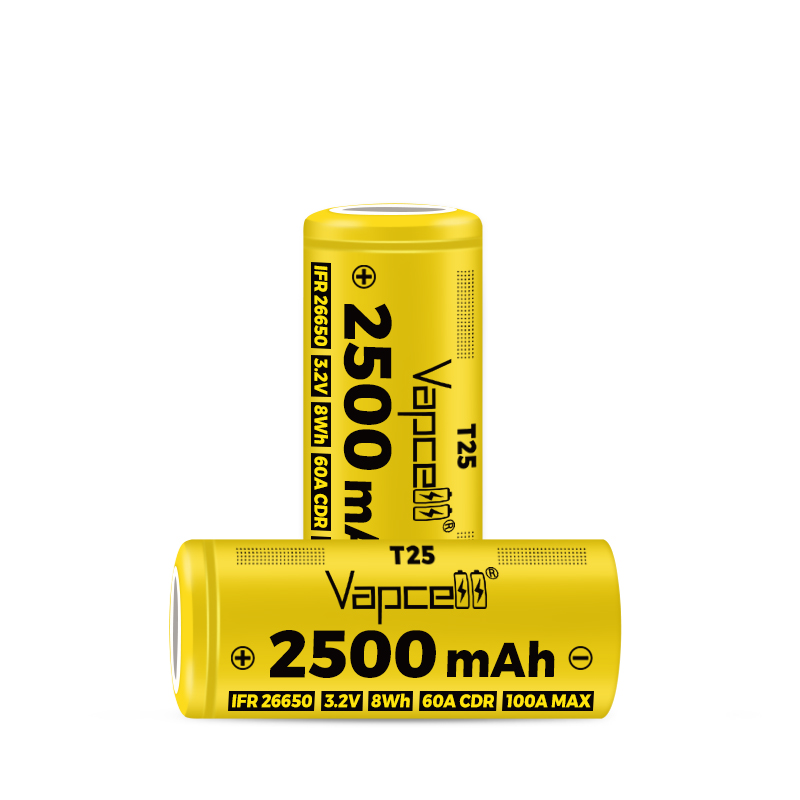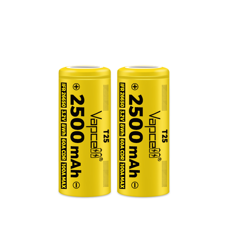 Vapcell Beat A123 26650 2500mAh IFR Vapcell T25 60A/100A 3.2V Rechargeable Lithium Ion Battery for EV UPS Headlight Power Tools