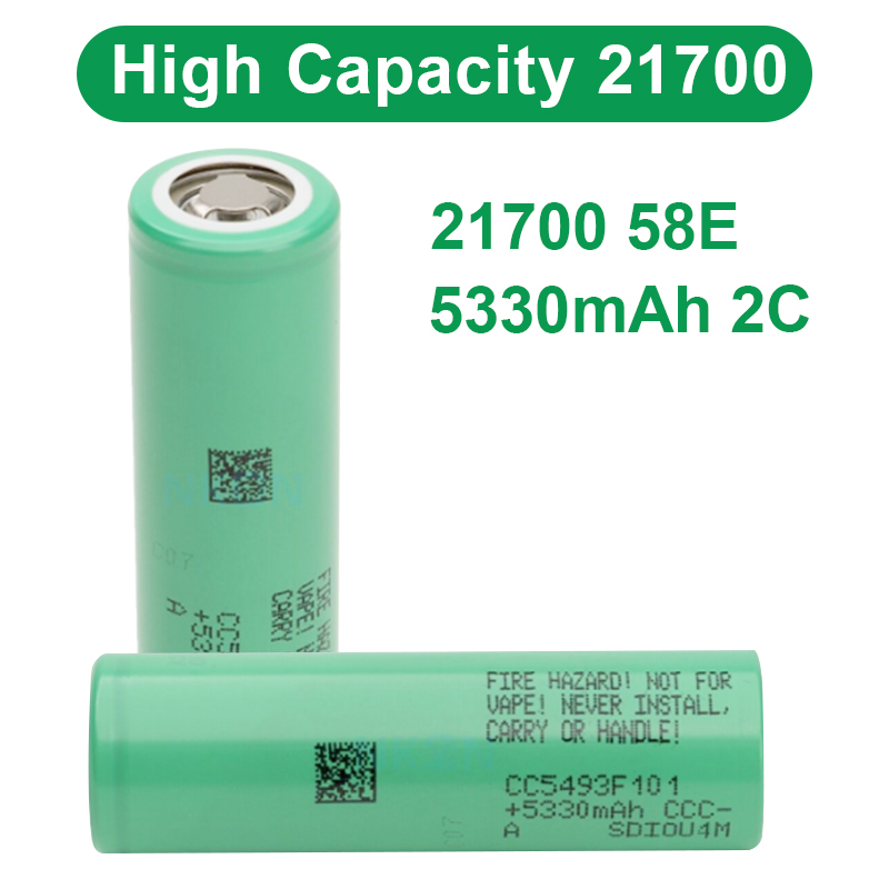 High Discharge 58E 21700 5330mAh 2C Battery High Drain Flashlight Battery Max 10.7A Discharge 3.6V